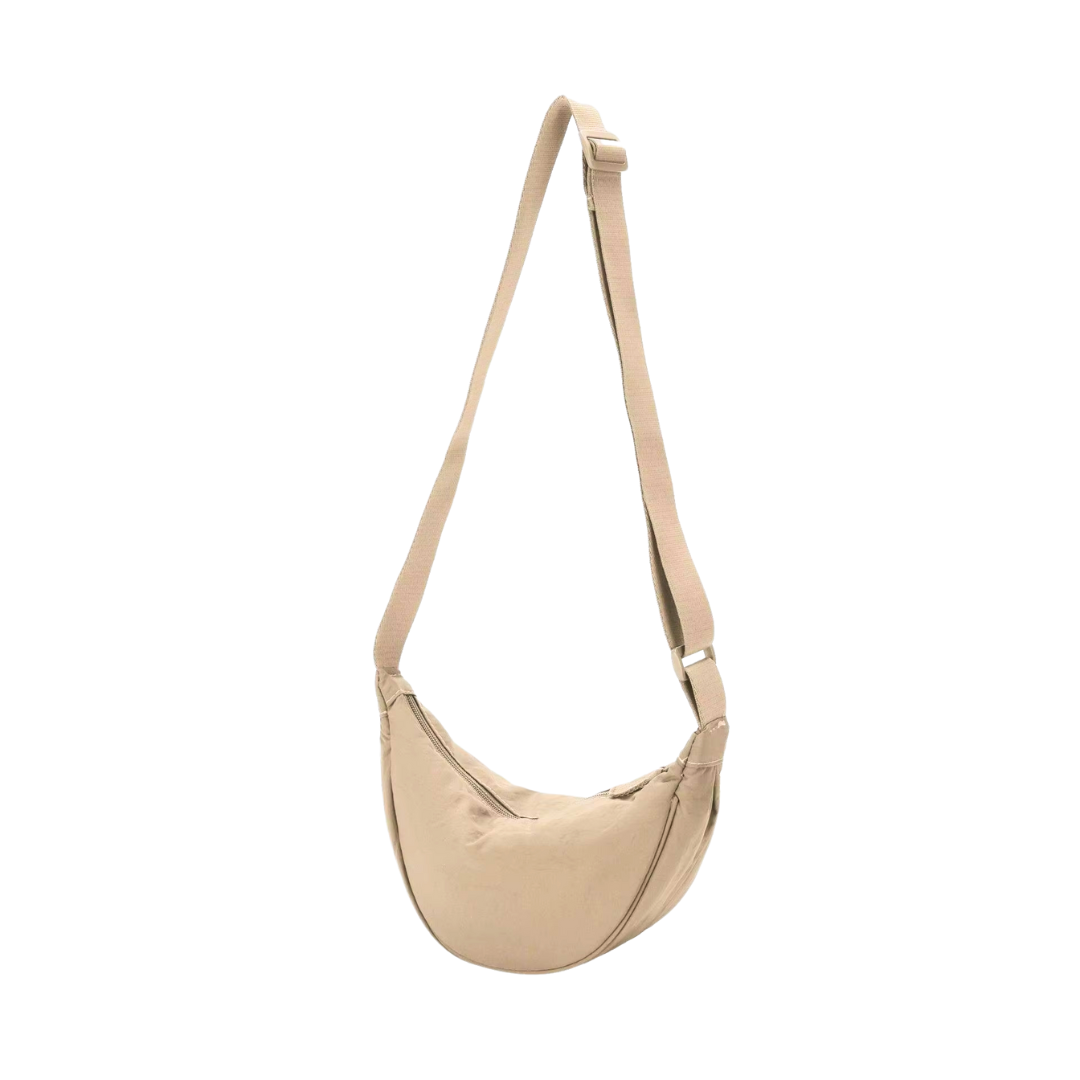 The Moon Bag is the perfect cross body bag for your on-the-go lifestyle. Made with padded lightweight nylon, it feels smooth and fits comfortably along your body. With its convenient size, adjustable strap and 2 inner pockets, it's the perfect choice to carry your phone and wallet. Say goodbye to bulky bags and hello to stylish convenience with The Moon Bag!